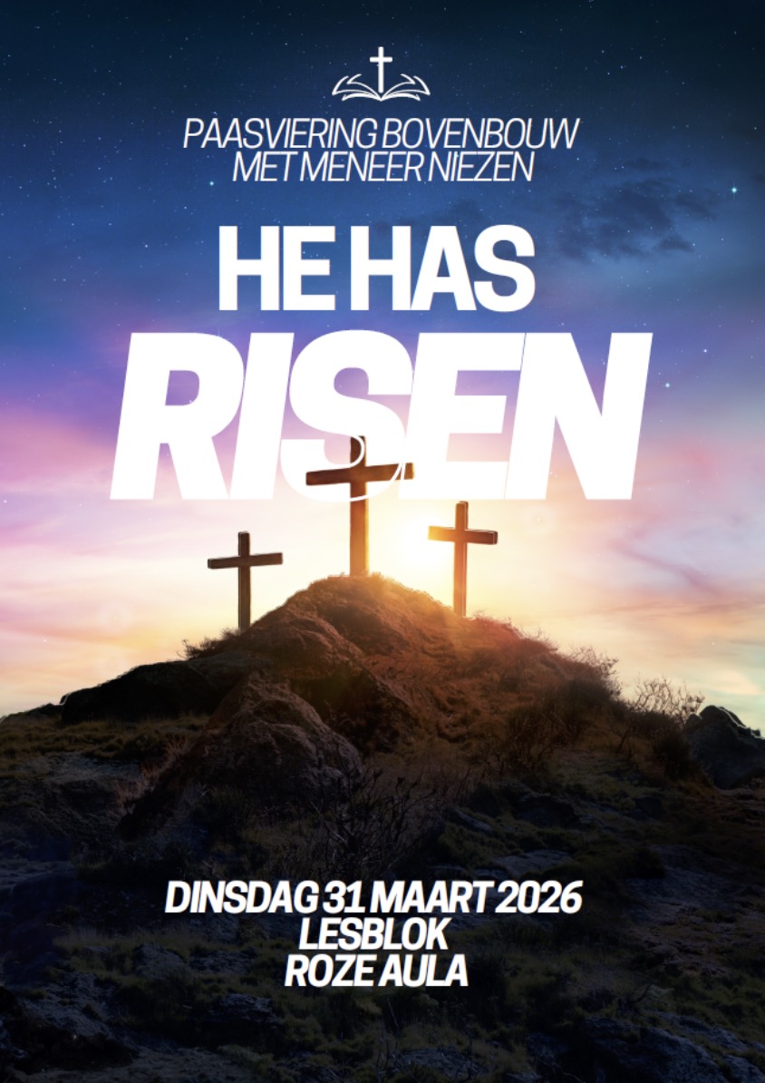 Deze spreker is bekend met onze leerlingen en met het spreken voor groepen. Arjen zal op een creatieve wijze het paasevangelie delen.